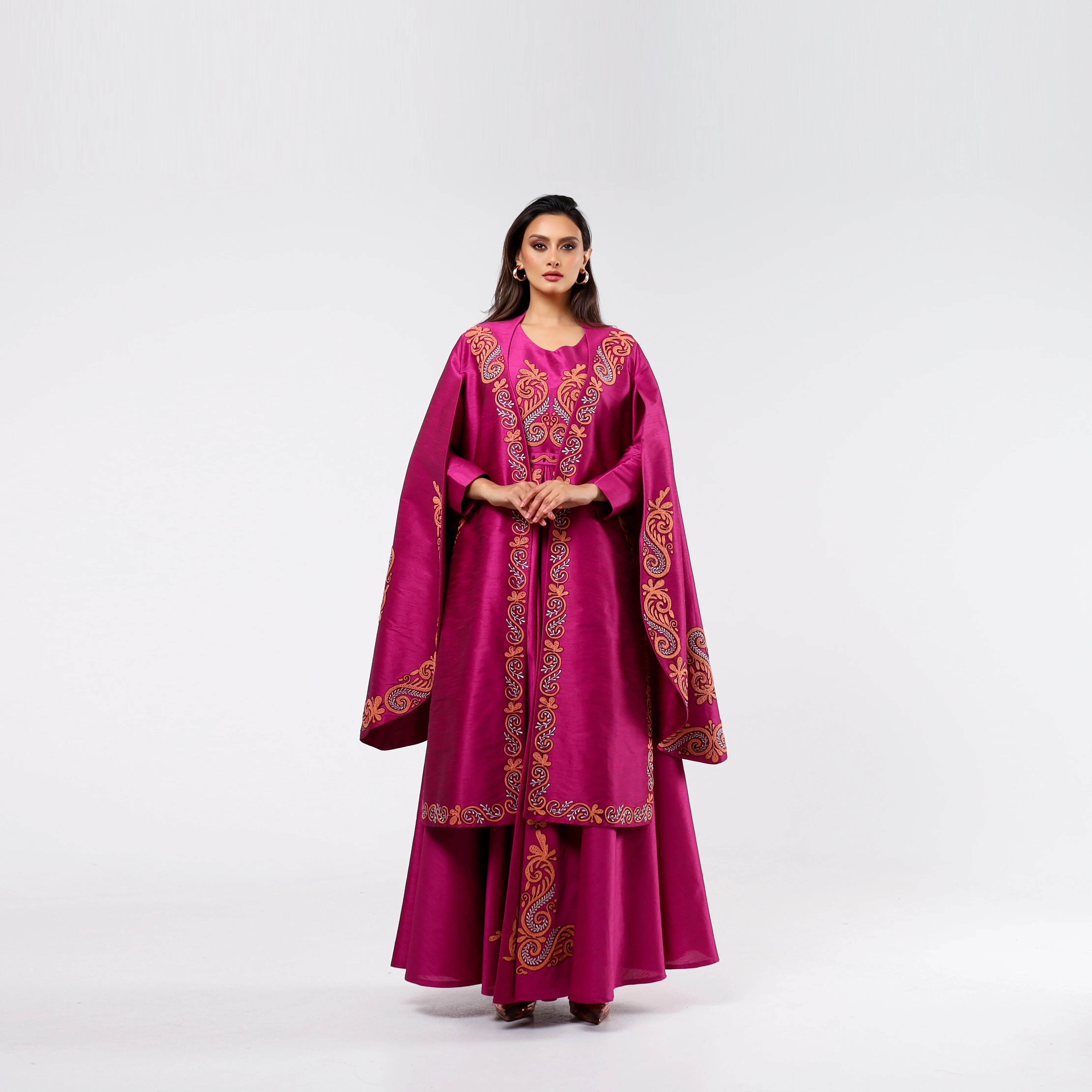 كما أن التطريز اليدوي يضيف لمسة فريدة تعكس عناية واضحة في التصميم.